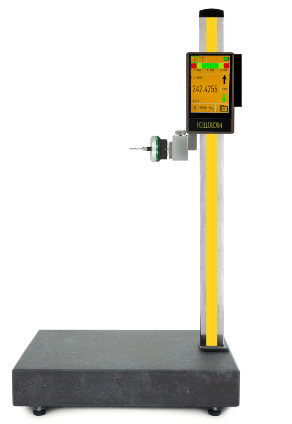 MICROTECH manufacturing MOTORIZED Tablet micron height gauges with touch probe on Granite base